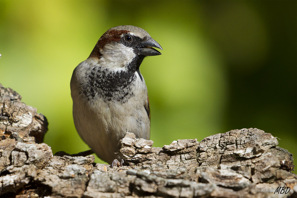 Otra de las fotos del comedero de mi jardín. La escasa profundidad de campo hace que las hiedras del fondo no molesten, al estar desenfocadas. Esto permite que visualmente la silueta del ave destaque.