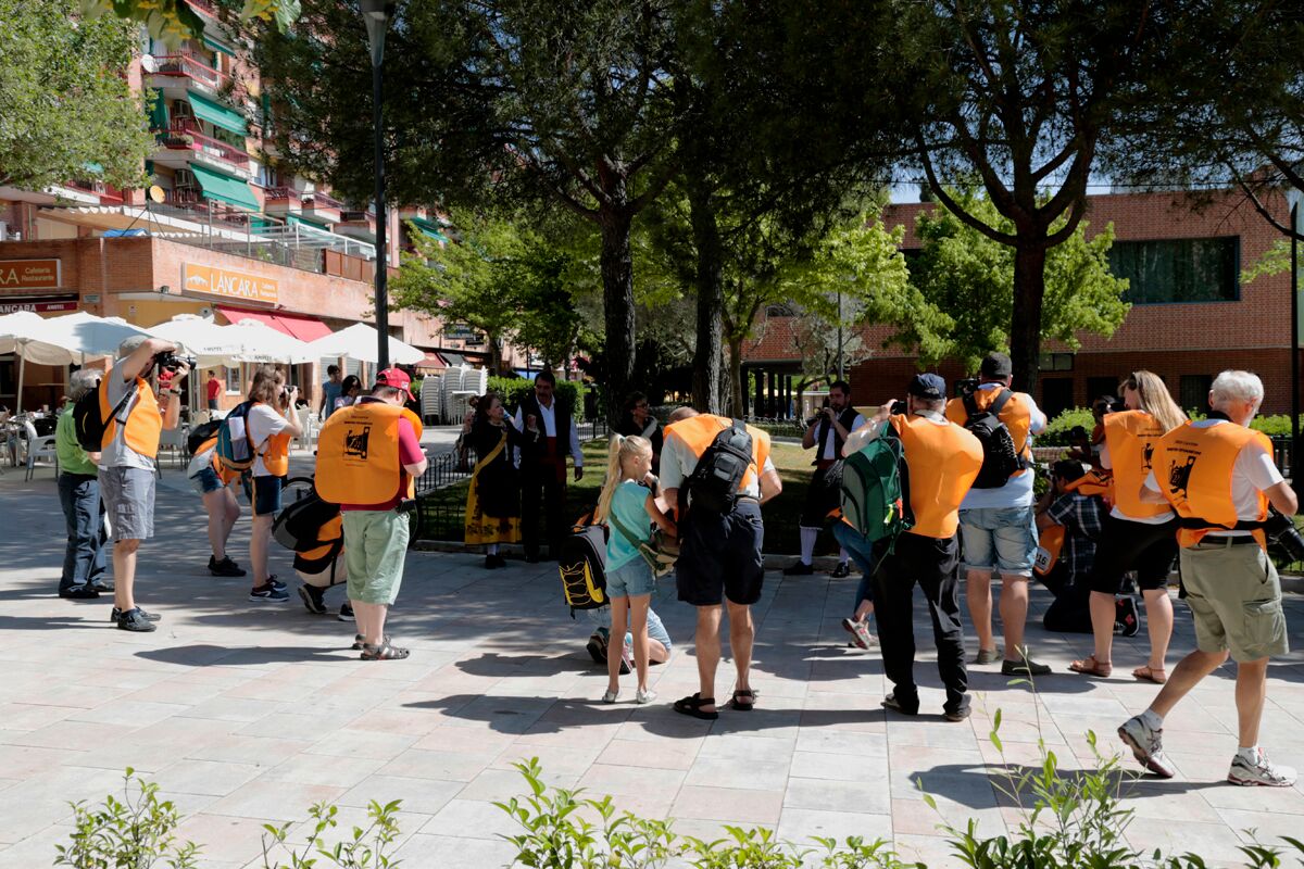 - Número 08: Fotografía de personas ataviadas con trajes típicos regionales, pertenecientes a la Asociación de Castilla y León de Tres Cantos, situados en Avenida de Colmenar a la altura del Sector Descubridores, entre las 11:15 y las 11:45 h.
